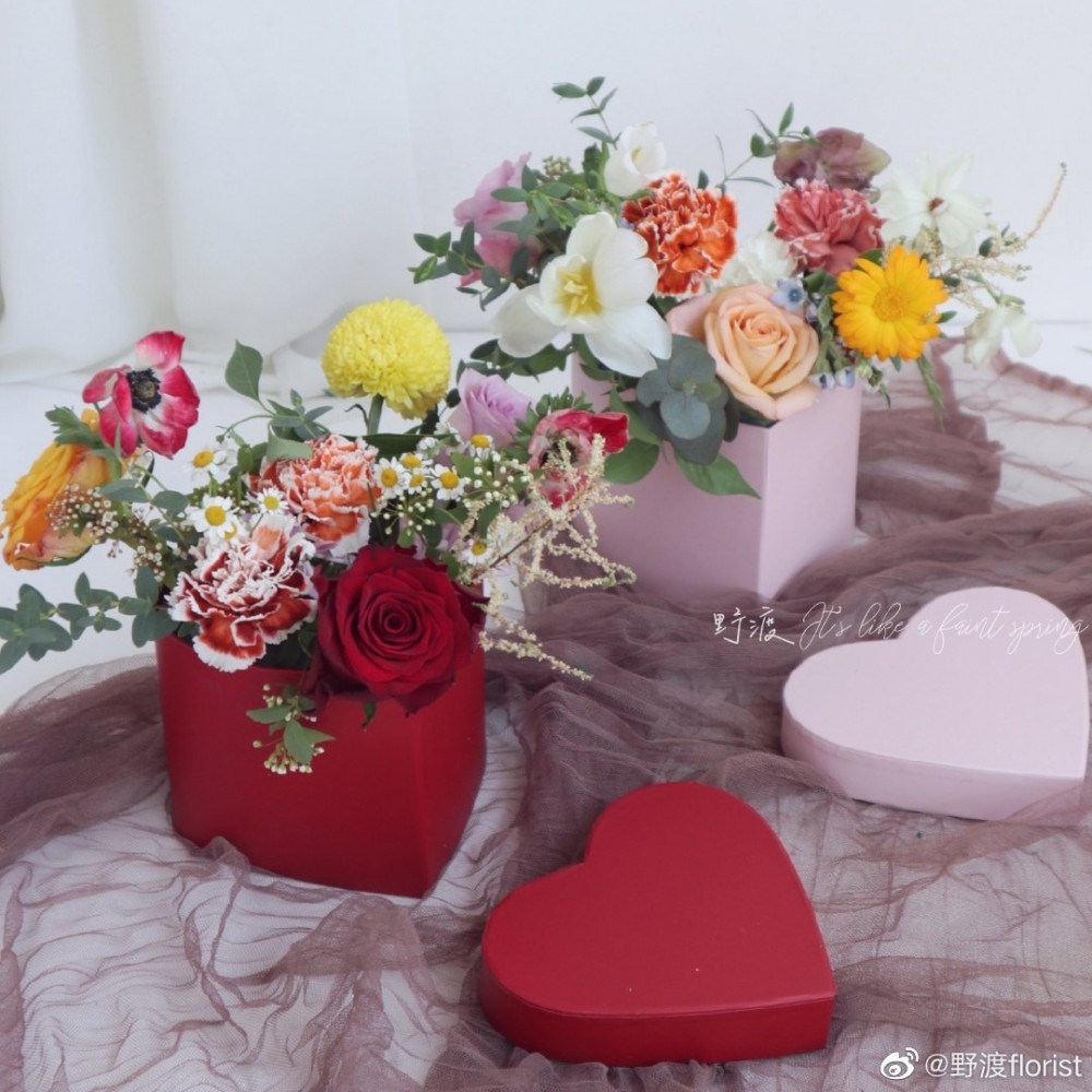 Boîte cadeau avec seau en forme de coeur, boîte de fleurs, boîte de roses