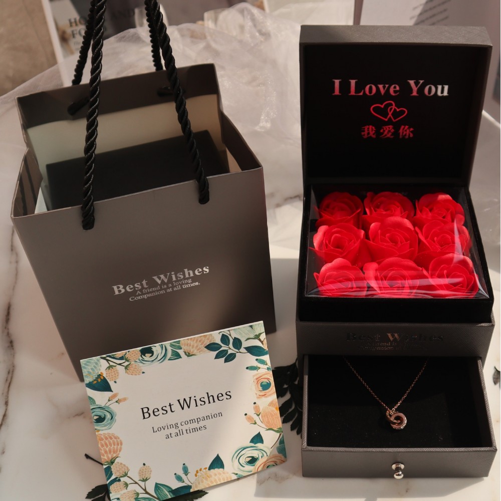 Fleurs éternelles 9 roses Boîte cadeau créativité tiroir à deux niveaux rouge à lèvres collier bague boîte à bijoux boîte à cadeaux de la Saint - Valentin