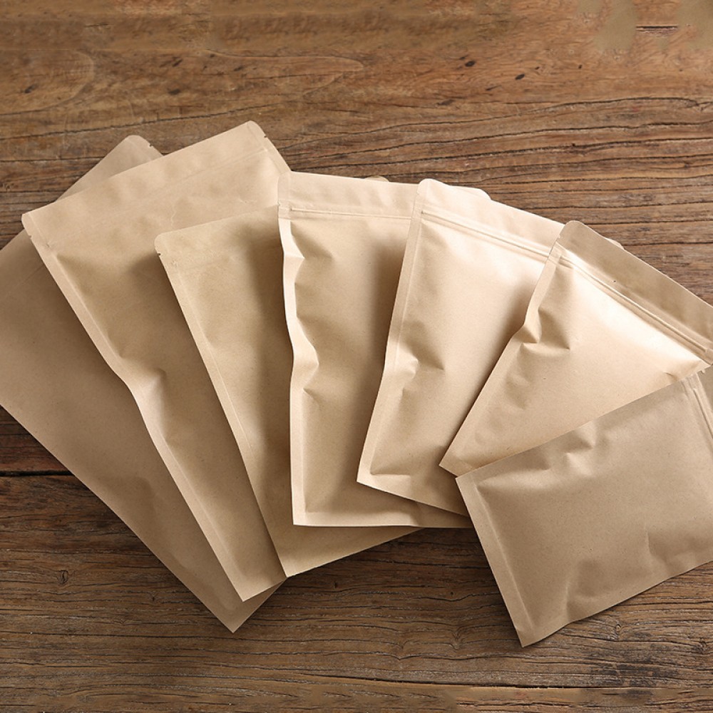 Sac en papier kraft auto - scellé à trois côtés, imprimé sur mesure, sans toit ouvrant, fruits secs, anti - huile, zéro sac zip alimentaire
