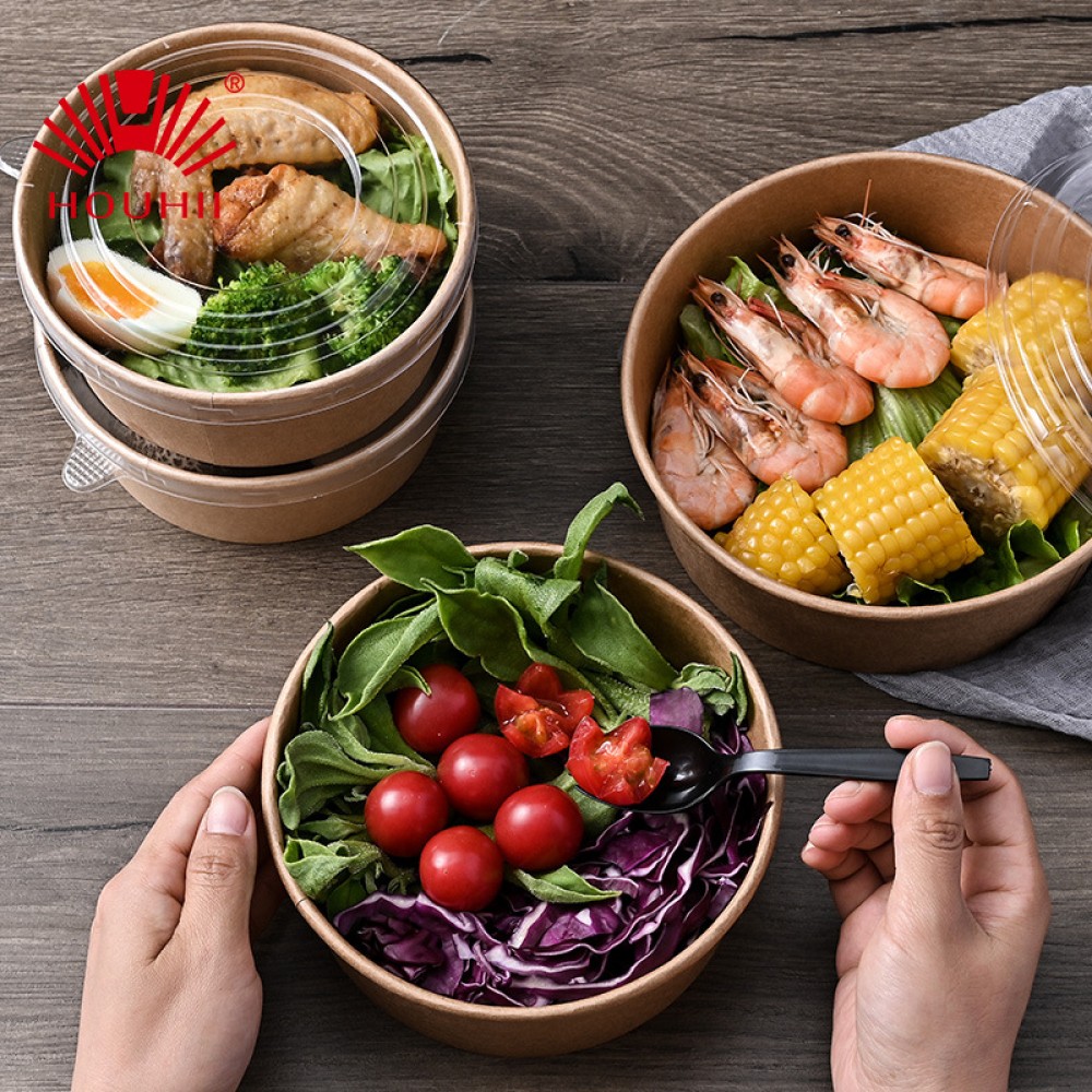 Bol en papier kraft personnalisé en gros boîte d'emballage à emporter jetable bol en papier à emporter emballage bol de bouillie boîte à lunch ronde bol à soupe
