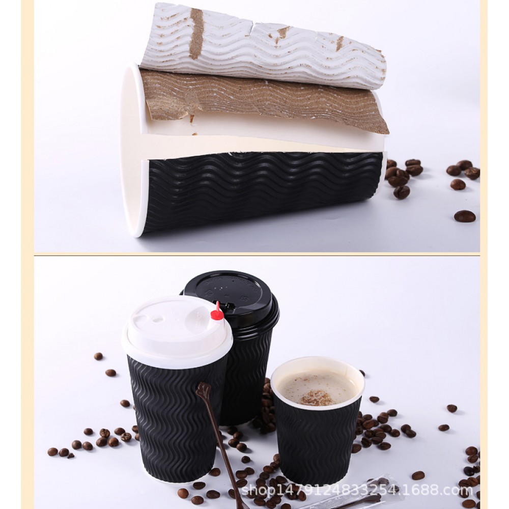 Gobelets jetables en papier à café, gobelets en papier ondulé épais anti-brûlure, gobelets pour boissons chaudes au thé au lait, gobelets à emporter, personnalisés avec couvercles